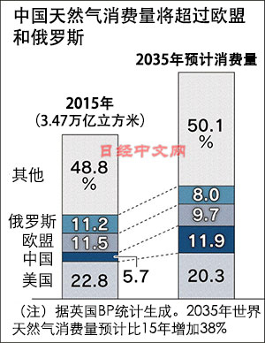 中國政府制定了到2030年的天然氣中長期計(jì)劃,英國石油公司(BP)也發(fā)布了到2035年的能源動(dòng)向預(yù)測。屆時(shí),天然氣的全球消費(fèi)量將超過煤炭,按不同地區(qū)來看,中國消費(fèi)量增加顯著,將超過歐盟和俄羅斯,成為僅次于美國的世界第2大天然氣消費(fèi)國。