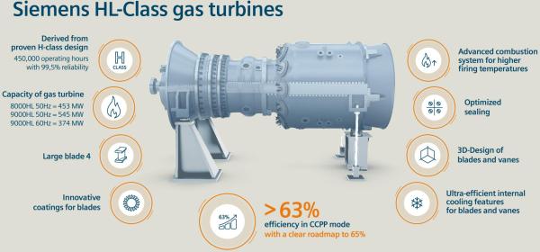 據(jù)介紹,西門子HL級燃氣輪機包含三款機型:SGT5-9000HL、SGT6-9000HL和SGT5-8000HL,三款燃機均可實現(xiàn)超過63%的聯(lián)合循環(huán)效率。
