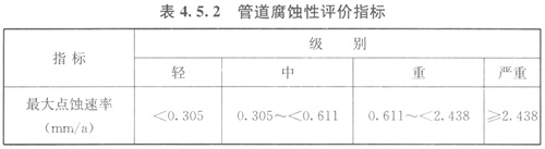 4.5.2管道腐蝕速率應(yīng)采用最大點蝕速率指標(biāo)進行評價。管道腐蝕性評價指標(biāo)應(yīng)符合表4.5.2的規(guī)定。