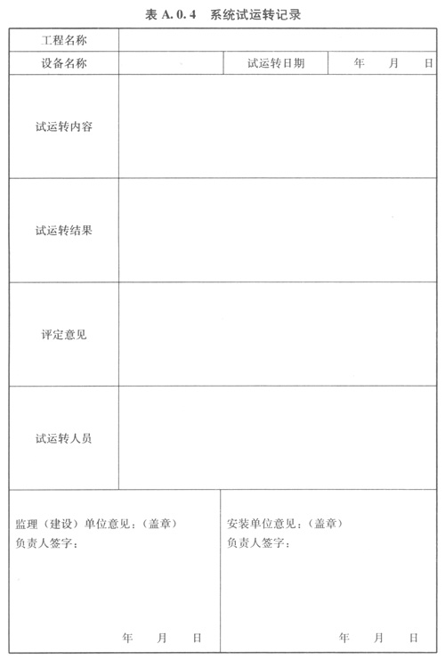 A04系統(tǒng)試運轉(zhuǎn)記錄可按表A04的格式記錄。