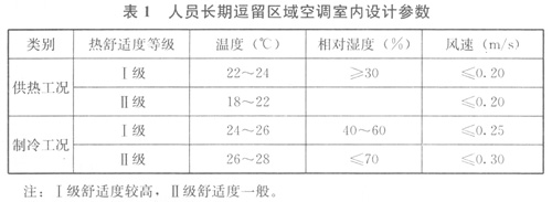 1人員長期逗留區(qū)域空調(diào)室內(nèi)設計參數(shù)應符合表1的規(guī)定: