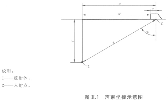 使用脈沖波技術(shù),應(yīng)在示波屏上設(shè)置超聲時基線。一束透射聲束的聲程距離、深度、水平距離、或者扣除前沿的水平距離的坐標,見圖E.1。除非另有注明,下述所提及設(shè)定時基線工藝是指聲束傳播的聲程距離(一個回波等于兩次的傳播路徑)。