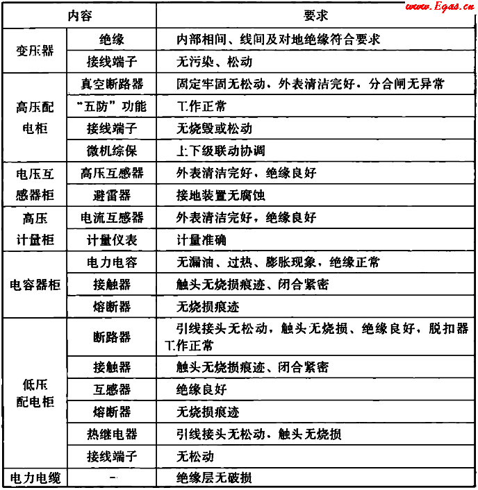 表5.4.5 供電系統(tǒng)巡檢頻次要求