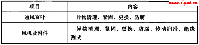 表5.3.4 通風(fēng)系統(tǒng)維護(hù)項目和內(nèi)容