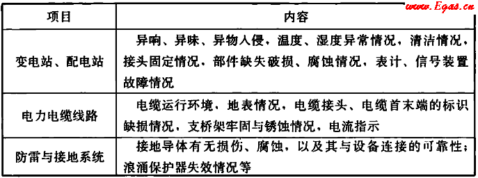 表5.4.4 供電系統(tǒng)巡檢項目和內(nèi)容