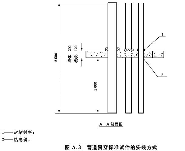 A.4 管道封堵材料安裝在樓板或墻體上進(jìn)行耐火試驗,樓板和墻體應(yīng)預(yù)留可穿試驗用管的孔洞。管道封堵材料的安裝方式應(yīng)足以反映其實際使用情況,為使試驗?zāi)軌蜻M(jìn)行而作的安裝修改應(yīng)對管道封堵材料性能無重大影響。試驗用塑料管材應(yīng)符合相關(guān)產(chǎn)品的國家或行業(yè)標(biāo)準(zhǔn)的要求。