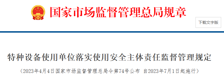 特種設(shè)備使用單位落實質(zhì)量安全主體責(zé)任監(jiān)督管理規(guī)定