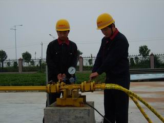 (圖十二)打開放氣閥門將高壓軟管內(nèi)的壓力泄掉,拆去高壓軟管及靜電接地線,使槽車盡快離開罐區(qū)。