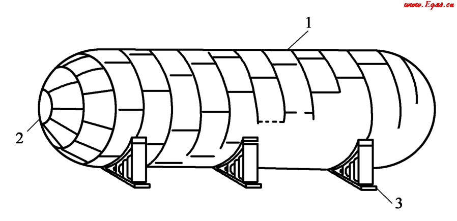 1—筒體;2—封頭;3—鞍式支座