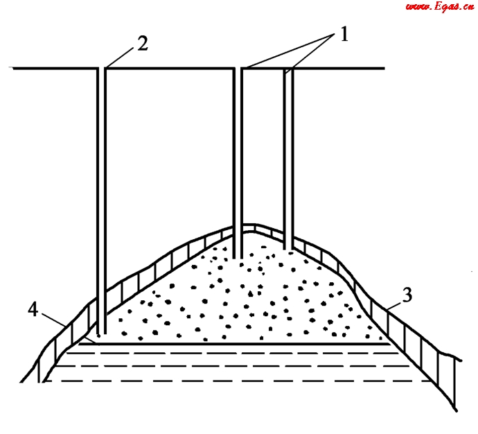 1—生產井;2—檢查(控制)井;3—不透氣覆蓋層;4—水