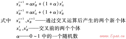 ⑤ 交叉運(yùn)算:交叉運(yùn)算是遺傳算法中產(chǎn)生新個體的主要操作過程。由于本文采用實數(shù)編碼,因此選用算術(shù)交叉,其表達(dá)式為: