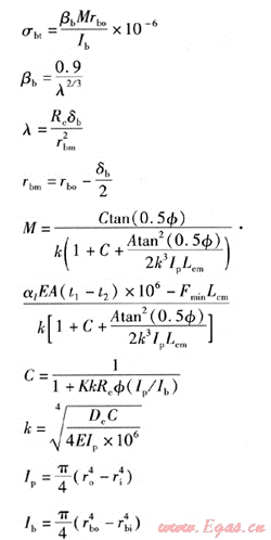 內(nèi)壓產(chǎn)生的環(huán)向應(yīng)力σpt的計算式為: