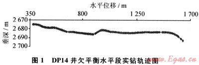 4) 在水平段欠平衡鉆井過(guò)程中采用EMWD,實(shí)現(xiàn)了水平段軌跡隨鉆測(cè)量和實(shí)時(shí)調(diào)整,圖1給出了DP14井欠平衡水平段實(shí)鉆軌跡。