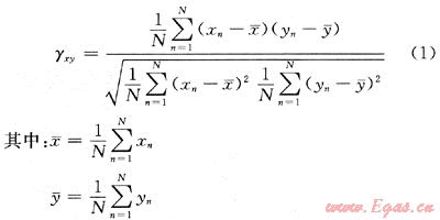 M是Yn相對(duì)于Xn的深度差(采樣點(diǎn)數(shù)差),式(2)在M<<N時(shí)適用。以M為變量,在適當(dāng)?shù)乃阉鞔伴L內(nèi)變化,則當(dāng)M正好為yn相對(duì)于xn的實(shí)際深度差時(shí),計(jì)算得到的γxy應(yīng)為最大。以此反推,在搜索窗長范圍內(nèi),當(dāng)計(jì)算的相關(guān)系數(shù)最大時(shí),M即為yn相對(duì)于xn的實(shí)際深度差(采樣點(diǎn)數(shù)差)。