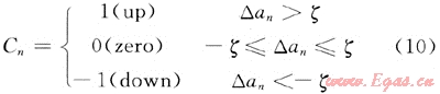 式(7)說明在第n個(gè)點(diǎn)附近存在較大變化,在滿足式(7)的同時(shí)滿足式(8)說明在該點(diǎn)附近也存在較大的反向變化,可判斷為“跳動(dòng)”。