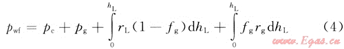 井底流壓由3部分壓力組成,及井口的套壓、純氣柱壓力及混氣液柱壓力三者之和:
