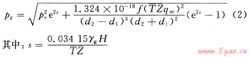 對于上部純氣體段的流動狀態(tài)可認為是霧流,可以根據(jù)天然氣干氣井井底流壓的計算方法計算氣柱產(chǎn)生的壓力[5]。即