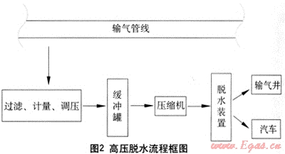 (2) 站址靠近高壓管線,對(duì)于燃?xì)夤?yīng)系統(tǒng)來說,壓力就是財(cái)富,可以充分利用高壓管線壓力,從高壓系統(tǒng)中取氣壓縮。由于市政管道內(nèi)天然氣氣質(zhì)良好,而且壓力相對(duì)較高,此情況下高壓脫水、低壓脫水均可采用,具體視項(xiàng)目實(shí)際情況確定。