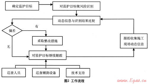 通過(guò)確定監(jiān)護(hù)目標(biāo)并以此為前提實(shí)施風(fēng)險(xiǎn)識(shí)別,同時(shí),對(duì)風(fēng)險(xiǎn)識(shí)別的結(jié)果做跟蹤監(jiān)控,根據(jù)監(jiān)護(hù)目標(biāo)在施工過(guò)程中出現(xiàn)的變化調(diào)整監(jiān)控措施,隨時(shí)關(guān)注第三方施工工地區(qū)域內(nèi)影響燃?xì)夤艿腊踩\(yùn)行的危險(xiǎn)因素,并且適時(shí)采取措施予以控制;將項(xiàng)目目標(biāo)動(dòng)態(tài)控制原理應(yīng)用在城鎮(zhèn)地下燃?xì)夤芫€巡查中,能切實(shí)提高現(xiàn)場(chǎng)安全監(jiān)護(hù)效率。