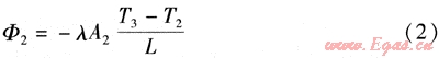 假設(shè)不考慮導(dǎo)熱桿的徑向?qū)?,根?jù)傳熱學(xué)定律,導(dǎo)熱桿的一維導(dǎo)熱量Φ2的計算式為: