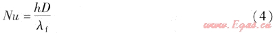 努塞爾數(shù)Nu的關(guān)聯(lián)式為[6]:
