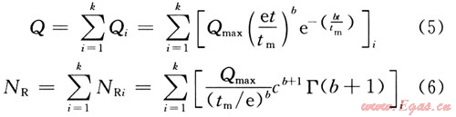 式中Qi表示第i個(gè)循環(huán)的年產(chǎn)量,108m3;NRi第i個(gè)循環(huán)的最終可采儲(chǔ)量,108m3;i=1,2,3,…,k??梢钥闯?,單循環(huán)模型是當(dāng)k=1時(shí)的多循環(huán)模型。