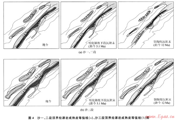 摘要:為研究渤海東北部海域遼東灣地區(qū)烴源巖的演化史,運用盆地模擬技術(shù),在恢復(fù)該區(qū)熱演化史和埋藏史的基礎(chǔ)上,利用EASY%Ro計算模型對10條測線進(jìn)行烴源巖成熟度演化分析,勾畫出烴源巖演化平面圖,得出遼中凹陷和遼西凹陷烴源巖的演化特征。研究結(jié)果表明:①遼中凹陷中北洼熱演化程度明顯高于南洼;②遼西凹陷北洼、南洼、中洼熱演化程度基本相同;③遼中凹陷比遼西凹陷熱演化程度高;④現(xiàn)今,遼中凹陷深部古近系沙河街組三段和沙一、二段烴源巖處于高成熟階段,凹陷邊緣處于重要生油區(qū),遼西凹陷主力烴源巖處于生油氣高峰。