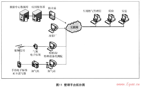 該系統(tǒng)可實現(xiàn)改裝信息、氣瓶信息、檢驗信息、車輛信息和加氣信息的集成,實現(xiàn)對CNG改裝車輛的實時監(jiān)控;實現(xiàn)對CNG車輛加氣前的身份識別,打擊非法改裝、杜絕給不合格車輛和氣瓶加氣,如圖2。