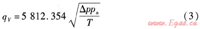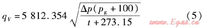 將數(shù)據(jù)qV=3000m3/h,ρn=1.293kg/m3,L=273.15K,pg=5kPa,p0=100kPa,pn=101.32kPa,t=20℃,△p=0.74377kPa代入式(12),可求得:K=4025.3021。