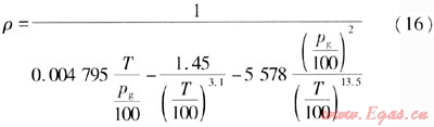 過熱蒸汽不同于理想氣體,不能通過理想氣體狀態(tài)方程來計算其密度,只能用以溫度和壓力為自變量的近似公式來計算其密度。式(16)是過熱蒸汽密度計算式之一[9]41。