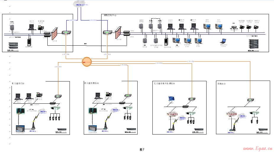 廣域網(wǎng)通信:對(duì)于SCADA系統(tǒng)的廣域網(wǎng)通信,從中心調(diào)度層到各站控系統(tǒng)的廣域網(wǎng)連接,通過(guò)廣域網(wǎng)路由器和租用專業(yè)通信公司的信道,以光纖或無(wú)線GPRS/CDMA方式,實(shí)現(xiàn)遠(yuǎn)程數(shù)據(jù)的傳遞和交換。通信協(xié)議采用MODBUS、DNP3等通信協(xié)議
