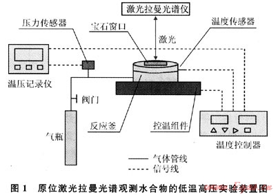 原位激光拉曼光譜觀測水合物的低溫高壓實驗裝置系青島海洋地質(zhì)研究所水合物實驗室自主設(shè)計、研發(fā),圖1為裝置的示意圖。整套裝置主要包括供氣系統(tǒng)、反應(yīng)釜、溫度控制系統(tǒng)、數(shù)據(jù)記錄儀、激光拉曼光譜儀等5個主要組成部分。裝置采用Pt1OOc精密溫度傳感器和半導(dǎo)體控溫,可控范圍-10~30℃,并能夠?qū)崿F(xiàn)梯度控溫。