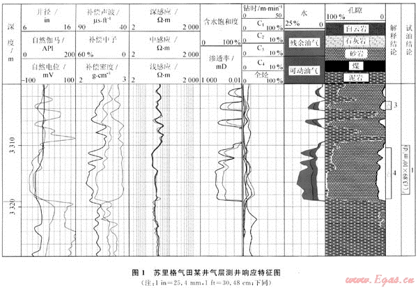 對于氣層識別來說,一個好的氣層,天然氣密度較大,使含氫指數(shù)、密度和聲波傳播速度都增高,故減少了幾種視孔隙度間的差異,從而可能將其誤判為含水層,甚至為水層。