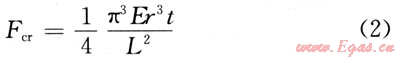 式中:E為彈性模量,Pa;r為半徑,m;t為壁厚,m;L為長度,m。