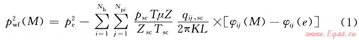 式中:qij為氣體從氣藏流入第i分支第j井段的流量;φij(M)為第i分支的第j井段在氣藏中任意點M處產(chǎn)生的勢。