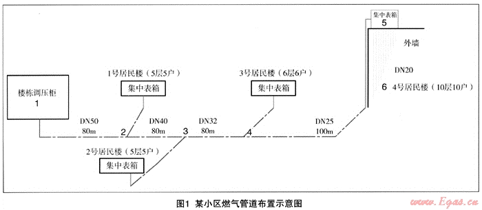 底層,所以,最高層末端主要防止超壓工作即大于燃具前最大允許壓力,而最底層主要防低于燃具最小允許壓力,即小區(qū)內(nèi)最不利用戶點在最高和最低層,中間必有一臨界層用戶末端燃具前壓力和天然氣燃具額定壓力相當,此樓層現(xiàn)有管道系統(tǒng)可完全利用。