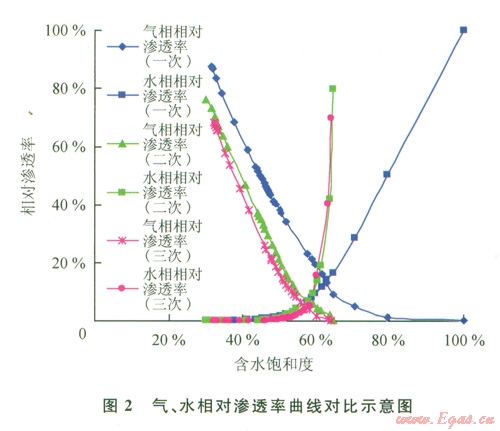 圖2為3輪氣、水互驅(qū)相對滲透率曲線的對比效果圖。