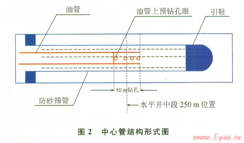 東方l-1氣田在開發(fā)時(shí)采用優(yōu)化篩管、盲管長(zhǎng)度比例以及位置關(guān)系對(duì)水平井各段予以均衡。經(jīng)過(guò)研究,東方l-1氣田采用伸進(jìn)篩管中的油管(圖2),尾段