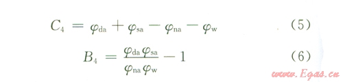 由于φda、φsa、φna和φw都作了巖性和泥質(zhì)校正,因而只反映了孔隙流體性質(zhì)的影響,天然氣對四者的影響一并用C4或B4表示。顯然,若儲層為水層,C4=0,B4=0;若儲層為氣層,C4>0,B4>0。