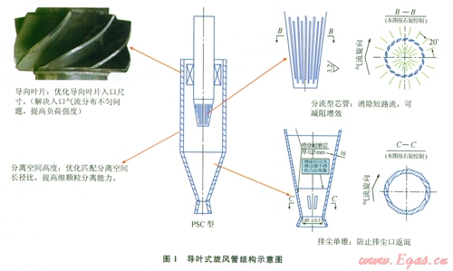 設(shè)計基本原則是在許可壓降下,為了保證高分離效率,使旋風(fēng)子截面氣速不低于