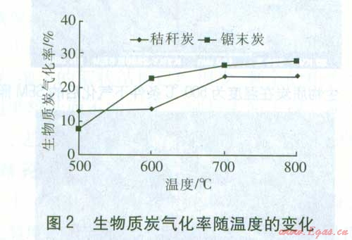 ①溫度對生物質炭氣化率的影響