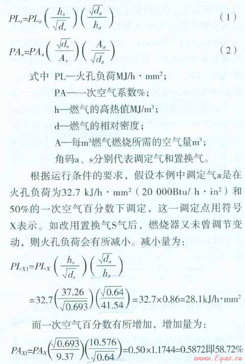如前所述,本文是介紹美國(guó)燃?xì)饣Q性的求解公式,在此,先說明燃?xì)饣Q前后,火孔負(fù)荷和一次空氣系數(shù)發(fā)生變化的計(jì)算公式,以加深對(duì)這些公式應(yīng)用的理解。公式導(dǎo)出的過程則隨后有所論證。
