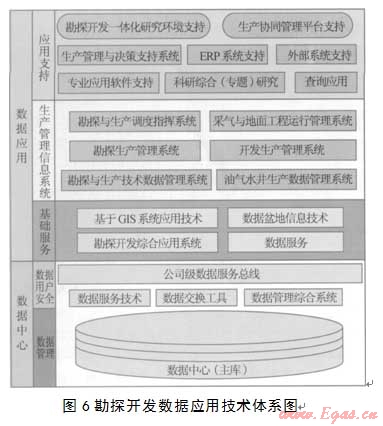 油氣田公司數(shù)據(jù)應(yīng)用技術(shù)體系建設(shè)總體上分為兩大系統(tǒng)或平臺(tái)(圖6),即勘探開發(fā)一體化研究環(huán)境支持和生產(chǎn)協(xié)同管理平臺(tái)支持。