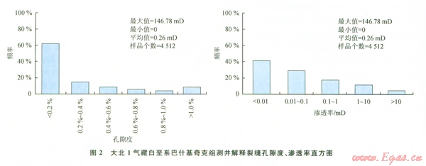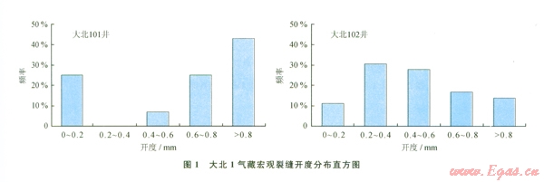 根據(jù)巖心觀察和校正后,大北氣田儲(chǔ)層段宏觀裂縫開(kāi)度大于