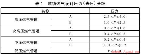 城鎮(zhèn)燃氣管道壓力分級及地下燃氣管道與建筑物、構(gòu)筑物或相鄰管道之間水平凈距分別見表1,表2。