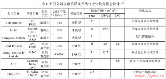 液化天然氣浮式生產(chǎn)儲卸裝置即 LNG FPSO,通常稱為 Floating LNG,簡寫為 FLNG。FLNG 可采用駁船或 LNG 貨輪改裝,直接停泊在氣田上方進行作業(yè),能夠避免陸上液化工廠建設(shè)可能對環(huán)境造成的污染問題。此外,該裝置便于遷移,可重復(fù)使用,當(dāng)開采的氣田衰竭后,可以遷移到新的氣田使用,尤其適合于邊際氣田的開發(fā)。FLNG 的開發(fā)研究最早始于20世紀70年代早期,90年代之后,隨著天然氣工業(yè)的不斷發(fā)展,天然氣需求量的不斷增加,天然氣價格的不斷上升和海洋石油工程技術(shù)的不斷進步,海上邊際氣田日益受到重視,國際各大石油公司和造船公司均投入到 FLNG 的開發(fā)中來,提出多種概念設(shè)計,并在FLNG 船體與產(chǎn)品儲存方式、液化工藝、換熱器形式、裝卸方式等方面取得一定進展,使其開發(fā)成為可能。