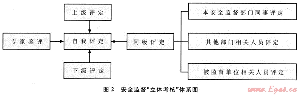 1) 安全監(jiān)督考核的實(shí)施應(yīng)遵循如下步驟:建立一個(gè)科學(xué)的考核機(jī)構(gòu),多方收集信息;進(jìn)行“立體考核”,上級評定安全監(jiān)督“立體考核”體系(見圖2)。
