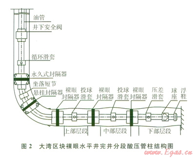 1)一次管柱多級(jí)卡封、逐級(jí)投球打開(kāi)各層滑套改造儲(chǔ)層的水平井分段完井方式可用于類似大灣區(qū)塊高壓、高產(chǎn)、高酸性天然氣井的完井投產(chǎn)。
