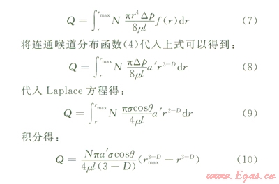 該式即為在壓差Δp下通過直徑大于r的連通喉道流量大小。同理,所有連通喉道被打開后(即非潤濕條件下),相同壓力下通過整個巖心孔喉的流量為: