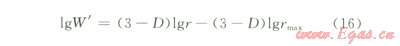 利用泡壓法分別測試潤濕條件和非潤濕條件下不同壓差時的流量數(shù)據(jù),根據(jù)上述公式計算不同直徑連通喉道對滲流能力的比率W',將lg W'與lgr或者lgp作圖,結(jié)合公式(16)和公式(17),通過線性回歸得出斜率,即可得出分形維數(shù)(D)。